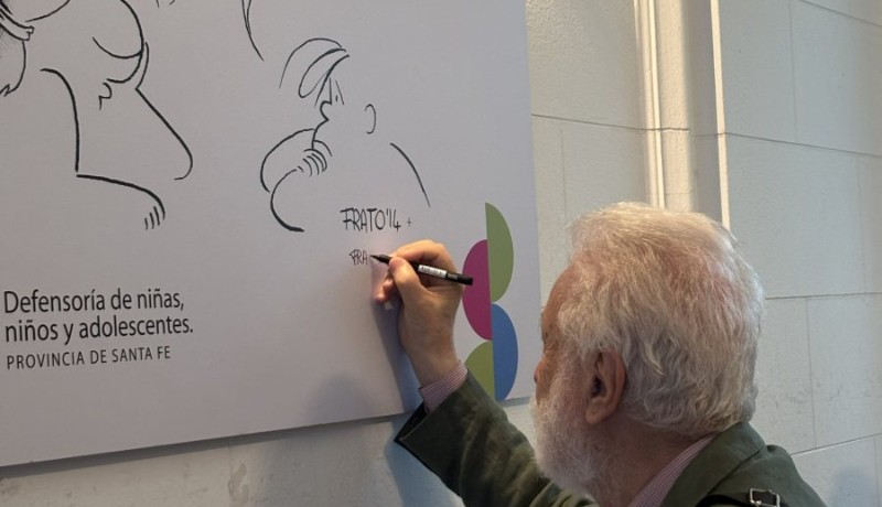 Tras la mesa de intercambio, Tonucci dejó una dedicatoria en una viñeta de su autoría que desde ahora quedará colocada en el ingreso de la Defensoría de Niñas, Niños y Adolescentes, y cuyo mensaje pone el acento en la importancia del Interés Superior de Niñas y Niños, eje central de intervención de los organismos de este tipo.