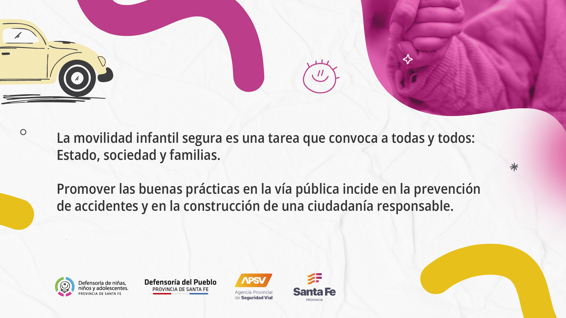 En el marco del Día de la Seguridad Vial Infantil, que se celebra cada 26 de septiembre en la provincia de Santa Fe por Ley 13.994, la la Defensoría de Niños, Niñas y Adolescentes y la Agencia Provincial de Seguridad Vial (APSV) llevaron adelante distintas acciones para informar y concientizar sobre la temática poniendo el foco de atención en el cuidado y protección de los más pequeños para evitar lesiones en su interacción con la vía pública.